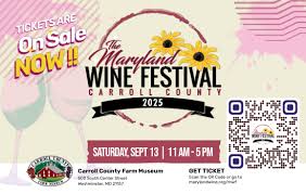 Farm Museum in Westminster, MD on September 13, 2025, from 11 am to 5 pm. Enjoy the most popular wine festival in Maryland. The